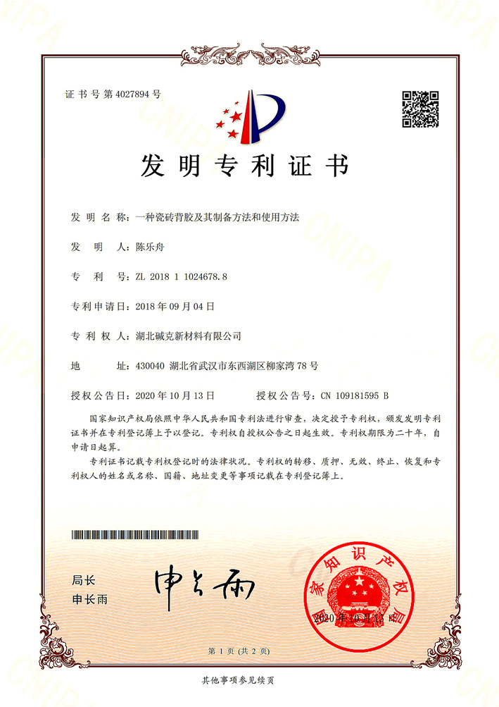 發(fā)明專利五《一種瓷磚背膠及其制備方法和使用方法》