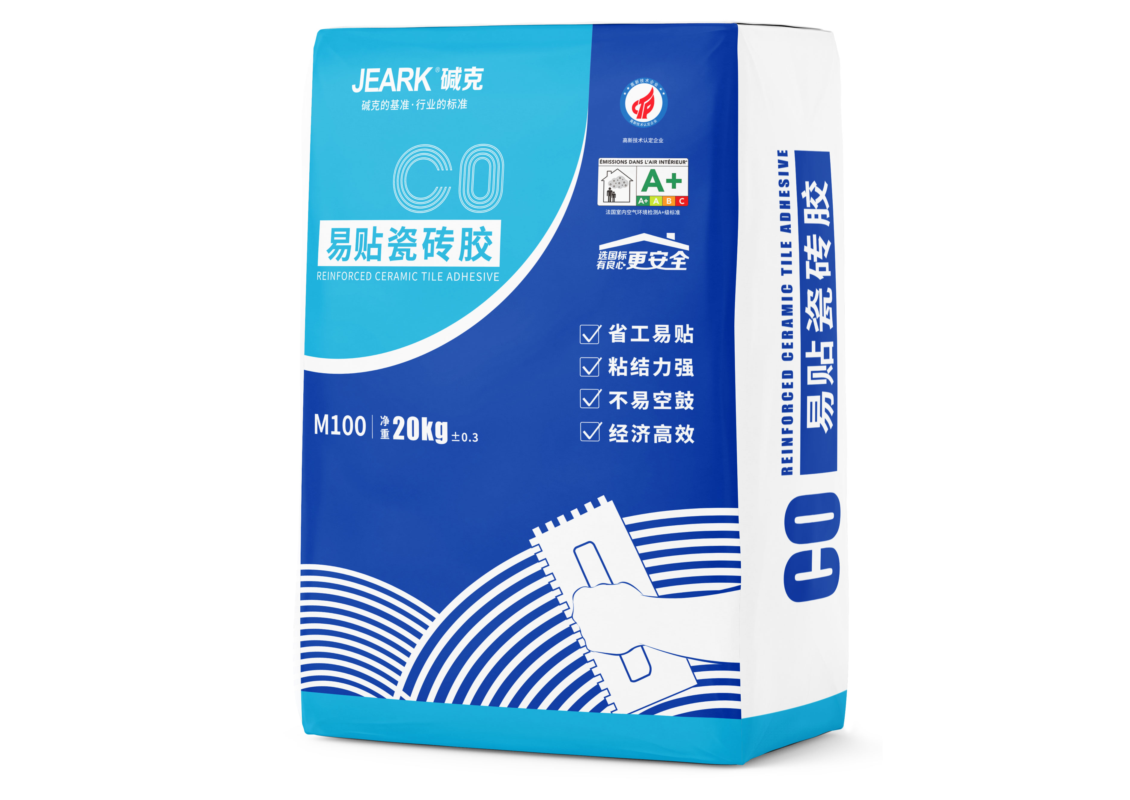 ·用齒型刮板將膠漿涂于工作面之上,使之均勻分布,并形成一條條齒狀,每次涂布不要超過1㎡(視天氣溫度而定),然后在晾置時(shí)間內(nèi)將瓷磚揉壓于上即可;